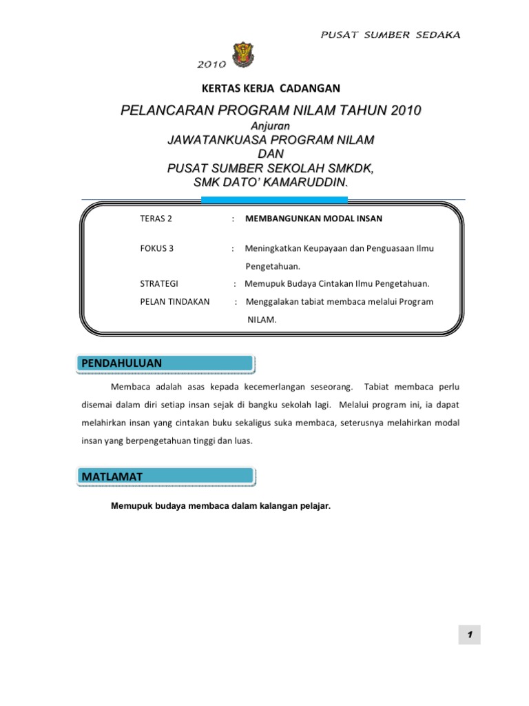 Kertas Kerja Pelancaran Program Nilam 2010 Pdf
